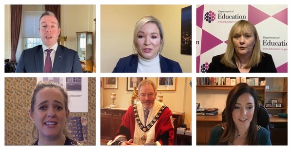 北爱尔兰保罗·吉万(左上)、米歇尔·奥尼尔(中上)、米歇尔·麦克尔文(右上)、凯特·尼科尔(左下)、威廉·麦考伊(中下)、凯茜·梅森(右下)先后致辞