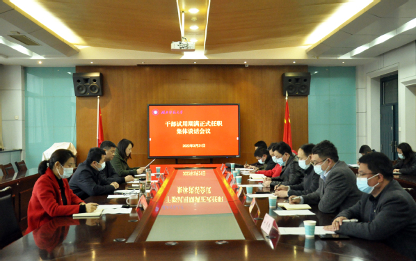 本网讯(通讯员 邵龄轩 摄影 杜心雨 李兰欣)3月21日下午,学校在科技大楼505会议室召开干部试用期满正式任职集体谈话。党委副书记、校长李宏出席会议并讲话。会议由党委副书记马列军主持。
