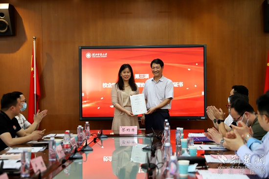 当天,通过湖北师范大学文学院“牵线搭桥”,共青团仙桃市委书记卢意一行,偕同仙桃市青年企业家协会部分会员,带着30万只爱心口罩不辞辛苦而来。捐赠仪式上,湖北师范大学校领导为企业家代表颁发创业导师证书,双方还就人才培养、学生就业、校地合作、校企合作等问题展开深入交流。