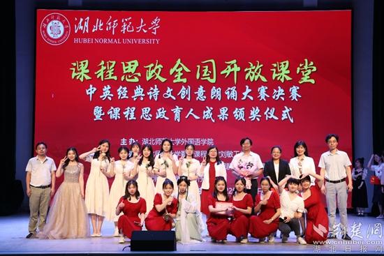 荆楚网(湖北日报网)讯(记者金康 通讯员刘敏、徐曼)5月26日,湖北师范大学外国语学院首次举行“英语专业课程群”课程思政全国开放课堂“中英经典诗文创意朗诵大赛决赛暨课程思政育人成果”颁奖仪式。