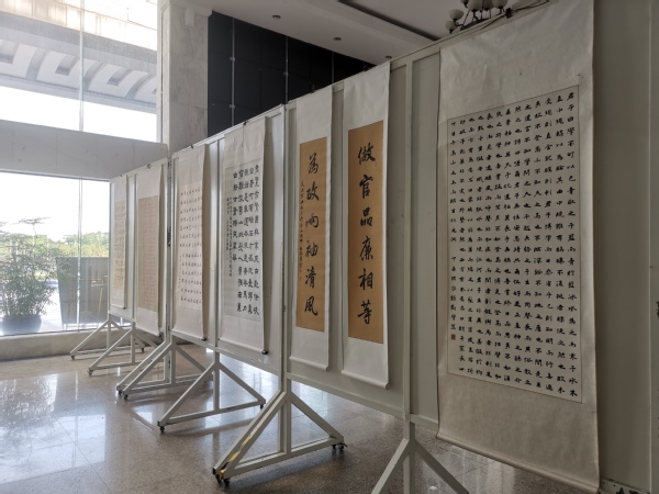 书法展围绕“大力弘扬清廉守正、担当实干之风”主题,展出优秀作品40幅,涵盖教师和学生比赛的获奖作品。前期征集入选书法作品共计54幅。此次展出活动将持续至10月16日,为期20天。