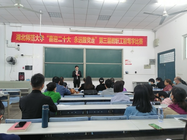 本网讯(通讯员 张雨晴 摄影 周丽霞、张毅) 一支粉笔磨功底,汉字飘香展师风。10月20日下午,由学校工会举办的“喜迎二十大,永远跟党走”第三届教职工粉笔字比赛在科技大楼顺利举行。经各分工会预赛推荐,来自各学院的18名教职工参与了本次比赛。