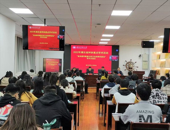 本网讯 11月18-19日,由湖北省科学技术协会主办,黄石市科学技术协会和湖北师范大学科学技术协会联合承办的2022年湖北省科协重点学术活动——“复杂遗传数据分析方法的研究前沿”学术交流会在湖北师范大学信息大楼召开。会议采用腾讯会议和现场会议同步进行的方式。