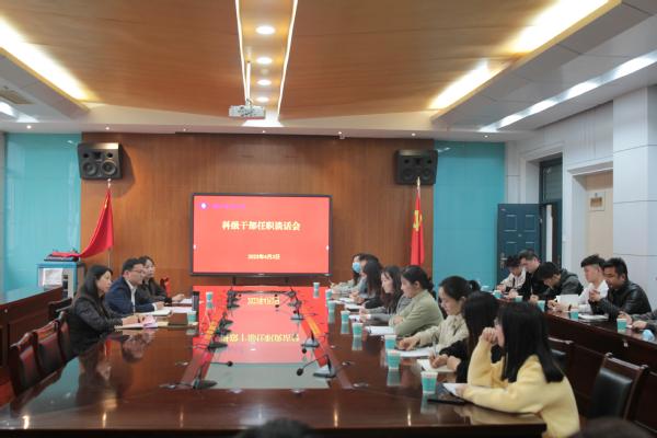 组织部常务副部长陈文斌同志与干部进行了任职谈话。他首先对新任职的28名干部表示祝贺,表示这次谈话会既是一次很好的警示教育会,也是一次加油鼓劲会,体现了党委对干部的殷切希望和关心爱护,希望新任职干部感恩组织、同事和家人,珍惜岗位,以此次任职为新起点,做到坚守信念讲政治,维护大局讲团结,提升素养讲担当,严守纪律做表率,以卓有成效的工作业绩,回报组织和群众的信任与期盼。
