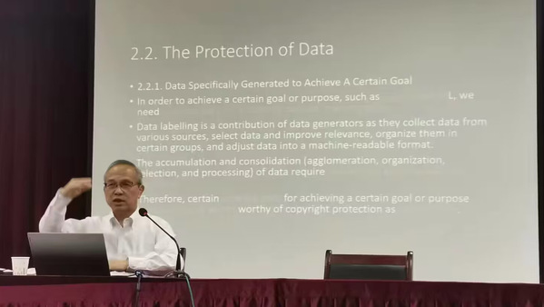 随后,刘孔中教授在信息大楼报告厅为经管法及相关学院师生做题为《数字经济下数据和算法规制问题》的学术报告,报告会由经管法学院相关负责人主持。