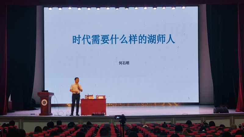 6月20日下午,凤凰山教育论坛总第8期、名校长论坛第4讲在湖师大礼堂顺利举行。本期论坛的主讲嘉宾是学校1995届校友、北京丰台二中教育集团总校长何石明。400余名师范生、课程与教学论教师和马克思主义学院师生代表参加了论坛。