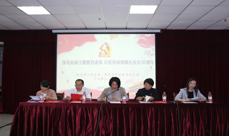 本网讯 为深入学习贯彻党的二十大精神,推动学习贯彻习近平新时代中国特色社会主义思想走深走实,坚持党建引领,充分发挥基层党组织战斗堡垒和党员先锋模范作用,10月27日下午,机关第二党支部、经济管理与法学院教工党支部在信息大楼报告厅联合举办了以“深化拓展主题教育成果,以优异成绩献礼校庆50周年”为主题的党日活动。机关第二党支部、经管法学院教工党支部党员参加活动。