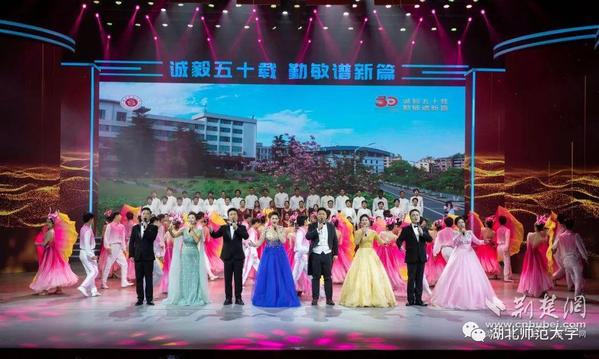 荆楚网(湖北日报网)讯(记者许文秀、唐天琪 通讯员祝治国) 风雨五十载,桃李满天下。11月18日,湖师故事汇“诚毅五十载 勤敏谱新篇”主题文艺晚会在湖北师范大学水上莲花大剧院举行。晚会以歌舞朗诵为载体,回首湖师大五十年岁月,展望湖师大未来新篇章。