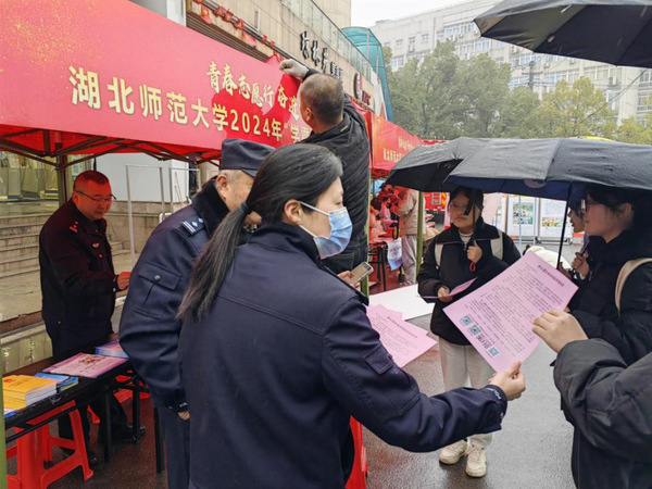 开学伊始,莘莘学子带着梦想和希望迎来了新学期!为增强全校师生的法治意识,营造文明、和谐的校园环境,3月5日上午,黄石港公安分局会同湖北师范大学团委、保卫部、市消防及应急管理局等部门,在湖北师范大学教育大楼前开展反邪、反恐及反诈等安全知识宣传活动。