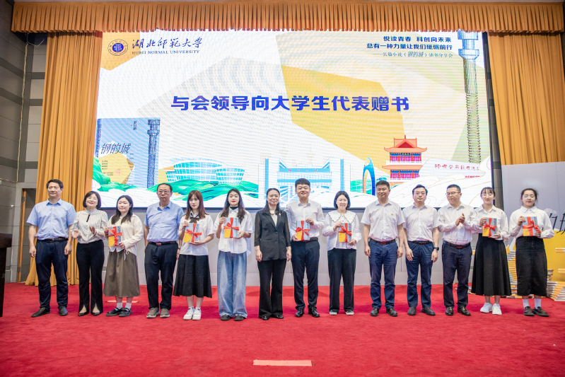 活动中,与会嘉宾向文学院、磁湖文学社、创业团队代表以及“同讲一本书,共爱一座城”讲书人比赛校级一等奖获得者赠送《钢的城》一书,寓意着将阅读的火种传递给更多的青年学子,激励他们为实现中华民族伟大复兴的中国梦而努力奋斗。