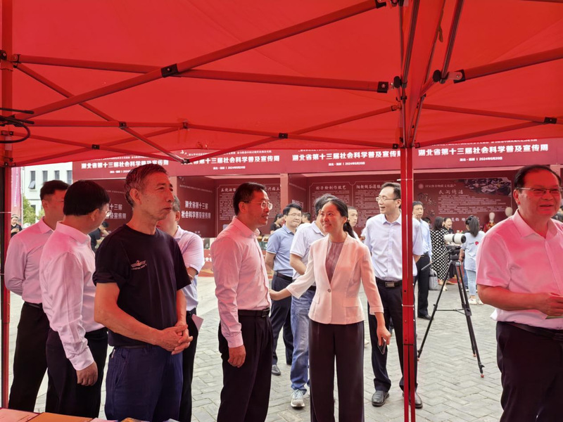 湖北省第十三届社会科学普及周启动式包括参观咨询、启动仪式、“社科之光”演讲、文艺汇演、考察咨询等丰富多彩的活动环节。我校展出了湖北师范大学社会科学界联合会和湖北省社科普及教育(黄石)基地在社会科学普及教育方面的成果,现场参加了法律咨询与服务、“新质生产力”宣传册分发、红色革命文化VR沉浸式体验等特色社科普及活动。