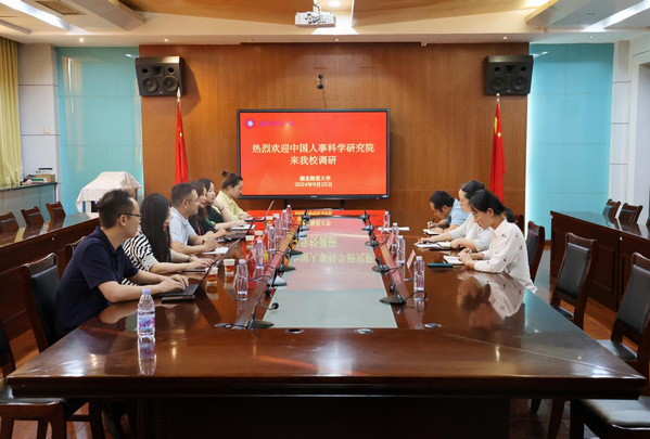 本网讯 9月25日,中国人事科学研究院事业单位管理研究室主任朱祝霞研究员率领调研组一行5人来我校进行高校人事管理工作专题调研。校党委常委、统战部部长肖六亿会见调研组一行,湖北省人力资源和社会保障厅事业单位人事管理处高扬调研员陪同,人事处相关负责人参加调研会。