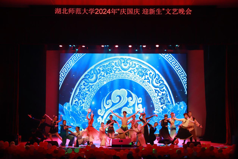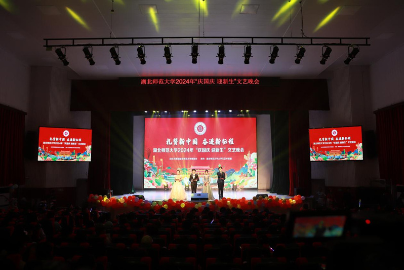 本网讯 礼赞新中国,奋进新征程。9月28日晚,由校团委主办、校大学生艺术联盟承办的2024年“庆国庆 迎新生”文艺晚会在湖师大礼堂燃情上演。