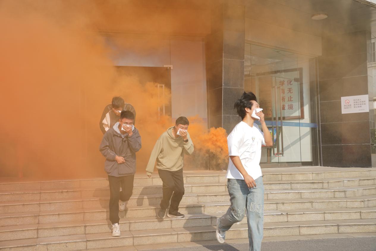 随着演练号令发布和警报声响起,被困在化环大楼师生迅速响应,按照预定的疏散路线有序撤离。在疏散过程中,大家保持冷静,低姿前行,捂住口鼻,避免逃离时吸入烟雾。保卫处工作人员在现场进行指导,为师生讲解火灾发生时的正确逃生方法和注意事项。同时,还组织了消防安全知识问答、体验模拟火场逃生帐篷、灭火器实操等活动,让师生亲身体体验灭火操作,掌握基本技能。