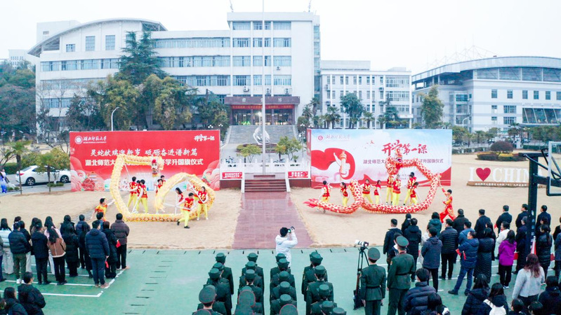 今年的“开学第一课”将爱国主义教育、思想政治教育和中华传统文化教育紧密结合,呈现不一样的“开学第一课”。9位“最美退役大学生”带来国旗下的演讲“戎装褪去志不改,青春逐梦正当时”,他们以热血战位淬炼青春锋芒,在迷彩岁月中完成从青涩到刚毅的蜕变,他们重返校园续写忠诚担当,用战术复盘演绎人生突围,以冲锋姿态感恩母校的育人沃土。随后,体育学院师生一展身手,将传统文化与现代体育精神巧妙融合,他们身姿矫健,棍枪武术表演刚劲有力,一招一式透露出中华武术的博大精深,舞龙表演灵动非凡,翻腾跳跃间尽显祥瑞之气,完美呈现我国传统文化的独特魅力,展现了师生们蓬勃向上的精神风貌。将现场气氛推向高潮。