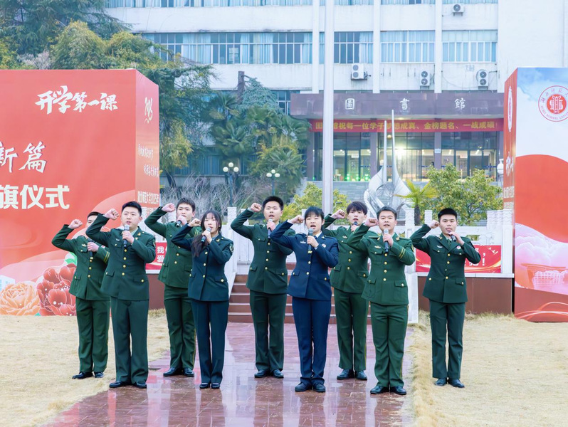 本网讯 2月17日,我校 2025 年春季学期“开学第一课”升国旗仪式在校中心篮球场举行。全体校领导、职能部门负责人以及学院师生代表等1000余人参与仪式。