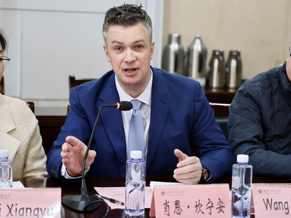 外国语学院外教肖恩·坎宁安老师也发表了讲话。他分享了自己在中国的生活和教学经历,表达了对中爱文化交流的支持和期待。