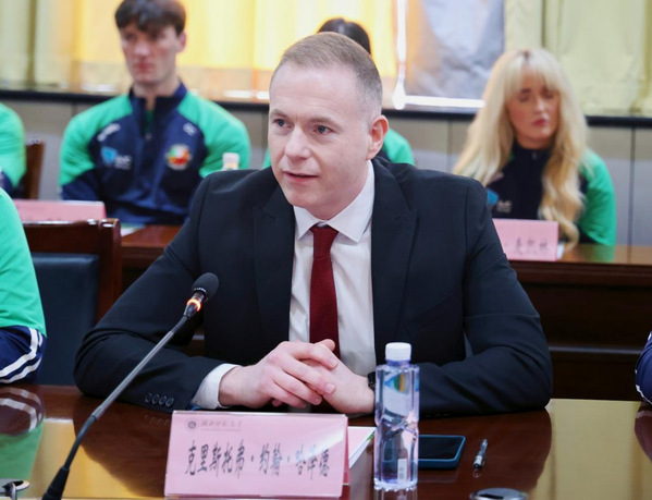 欢迎仪式上,雷儒金代表学校向远道而来的爱尔兰客人表示诚挚的欢迎和问候。他指出,体育是跨越国界、连接人心的桥梁,爱尔兰盖尔式运动作为爱尔兰文化的重要组成部分,展现了体育的独特魅力和团结精神。此次访问为双方在体育教育、训练方法以及学生体育活动等方面的合作奠定了坚实的基础。