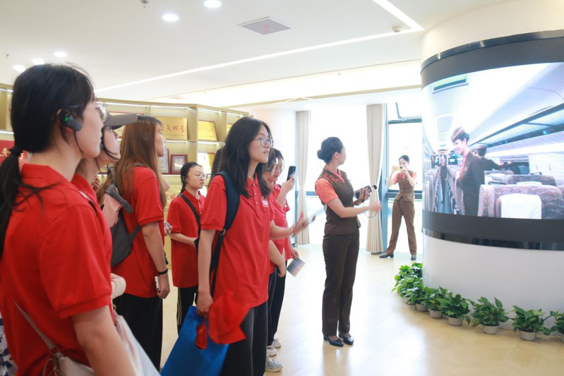 “作为华中地区交通枢纽,武汉站以‘黄鹤展翅’之姿,成为新时代中国高铁发展的缩影。”师生们跟随讲解员,从东进站口B区观光长廊出发,俯瞰站台全貌,感受“千年鹤归、中部崛起”设计的匠心独运;在西广厅文化展台前,深入了解武汉站“裸眼3D屏”“综合服务中心”等智慧化服务升级成果,体悟“人民铁路为人民”的服务宗旨;在乘务中心,同学们近距离观摩高铁运行“大脑中枢”,学习CTC-3列车控制系统、高铁核心速度曲线等核心技术,深刻领会“科技自立自强”的战略意义。