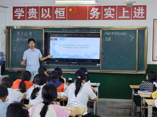 一位学生在结课反馈中写道:“谢谢老师教会我,原来生活就是最好的课堂,成长路上处处都有学问要学。”对于实践队的老师们来说,孩子们的每一点进步、每一张笑脸,才是这个夏天最珍贵的礼物。这个暑假,支教老师们用专业知识与教育热忱,为乡村少年打开了一扇看世界的窗。而那些在课堂上闪光的眼神、积极举起的小手、认真记录的笔记,都在诉说着:教育的星火,正在这些年轻的心灵里,燃成燎原之势。(通讯员 庞晨曦 牟联娟 郭先哲)