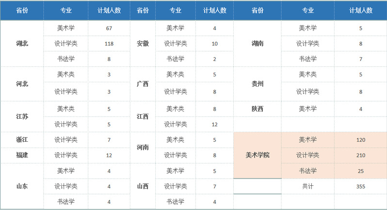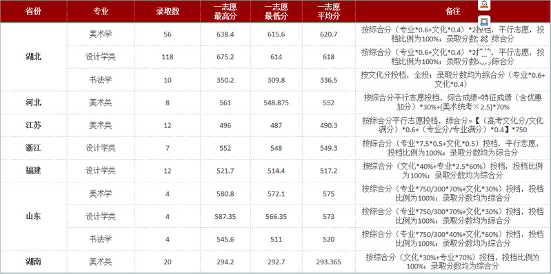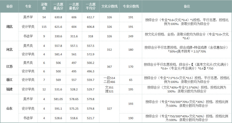 湖北师范大学美术学院本科生各专业历年录取信息