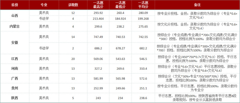 三、历年美术类专业录取分数信息