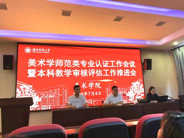 7月4日下午,为进一步做好新一轮审核评估与美术学师范类专业认证工作,美术学院在美术大楼二楼学术报告厅召开美术学师范类专业认证工作会议暨本科教学审核评估工作推进会。会议由学院党委书记徐明波主持,学校教学质量监测与评估中心主任秦海涛、院长卫鹏、副院长王莉莉以及学院全体教师参会。