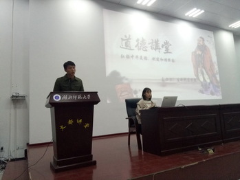 20181129日晚,我院携手保卫处及创新创业学院在文都讲堂开展了道德讲堂宣讲活动。三个单位的师生代表两百余人参加此次活动。