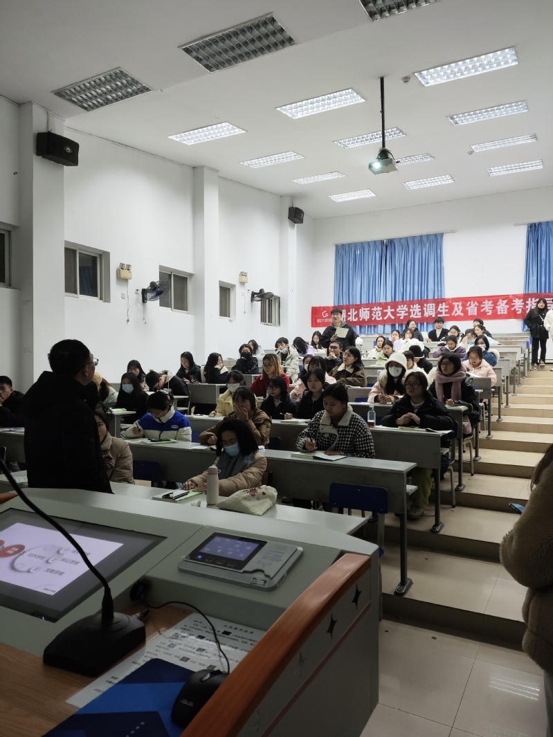 2023年12月29日晚上,生命科学学院在8J11教室成功举办2024年选调生和公务员省考备考指导培训会。生命科学学院学工办副主任张良老师主持本场培训会,邀请了选调生上岸且培训经验丰富的讲师到校授课,来自全校各学院的76名本科、研究生参加此次活动。