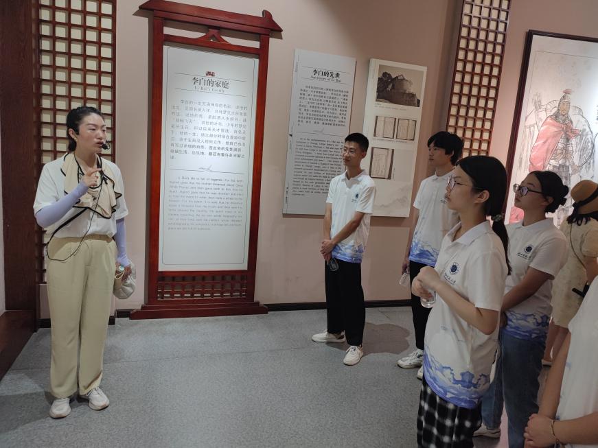 图为“丹丹”讲解员为实践队员讲解李白生平