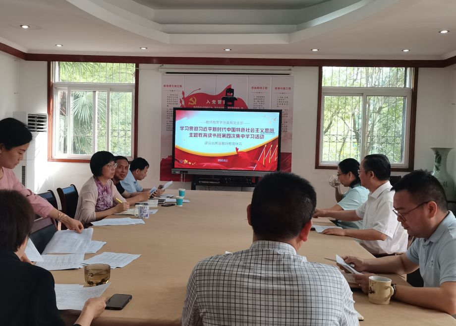 2023年6月1日上午,教师教育学院直属党支部在二楼会议室举行了学习贯彻习近平新时代中国特色社会主义思想主题教育读书班第四次集中学习活动,会议由学院党支部副书记胡天佑主持。