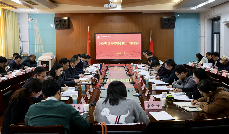 3月19日下午,学校在行政楼505会议室召开2025年目标管理考核工作推进会。校长雷儒金,全校各单位行政主要负责人出席本次会议。会议由校党委常委肖六亿主持。