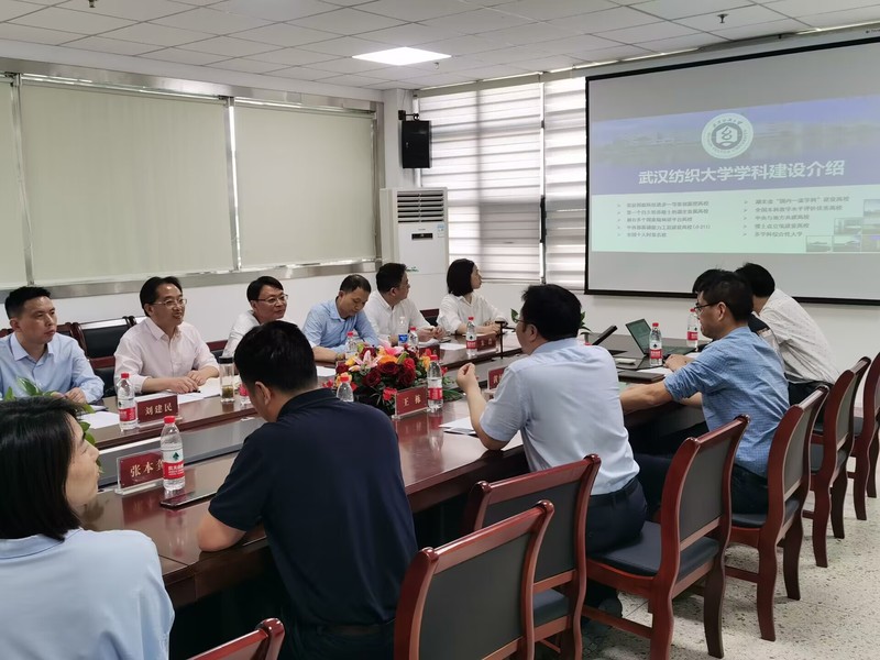 在随后的座谈会上,武汉纺织大学党委常委、研究生工作部部长、学科建设办公室主任王栋介绍了该校的四大特色优势学科群、“1+5+N”学科建设体系以及一流学科建设推进机制,并介绍了该校申博工作的推进情况。