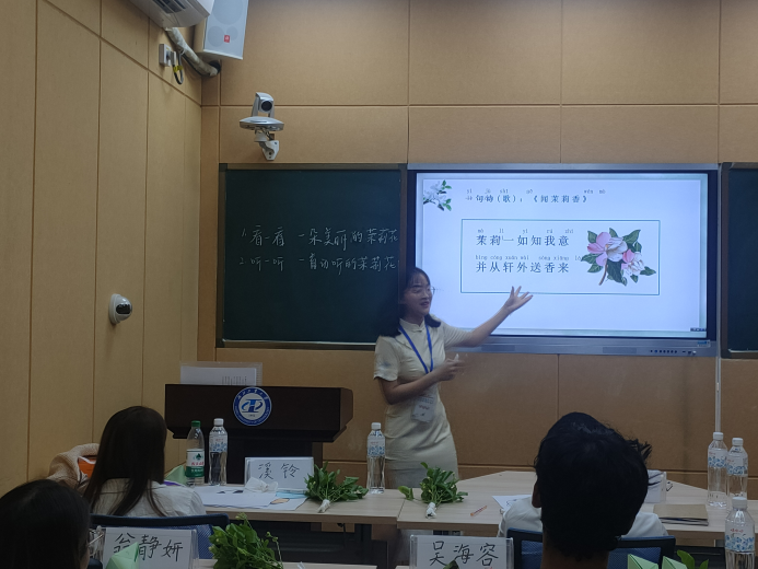 我院对本次大赛高度重视,本着“以赛促教,以赛促学”的宗旨,以期打开学生国际视野,赋能我校国际中文教育专业人才培养,积极鼓励和支持学生参与并迅速教师指导团队。经过半个多月的精心准备,从内容选定、课件制作、教案撰写以及才艺展示等环节反复打磨,两位选手在比赛中呈现出过硬的专业能力及素养,得到了在场评委专家、行业教师以及同道赛手的一致好评。