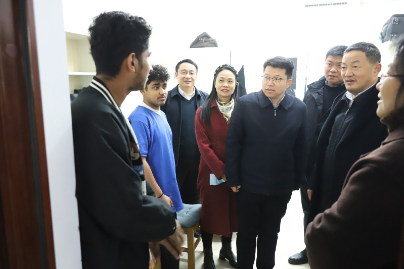 在2024年新春佳节和学校假期即将来临之际,1月13日上午,校党委书记李宏、校长雷儒金、党委副书记马列军、副校长王赛玉带队看望慰问在校留学生,向他们送去学校的关怀和温暖,并致以节日问候和美好祝福。国际学院相关人员参加走访慰问。