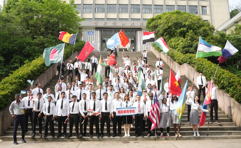 运动会结束后,国际教育学院教师与全体留学生进行合影留念。