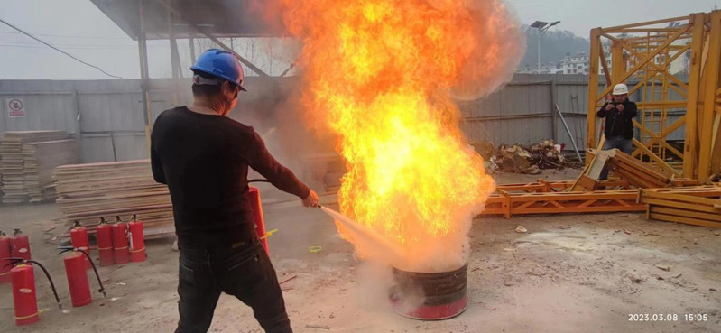 保卫处消防负责人柯俊首先讲解消防安全的重要性,详细介绍灭火器原理和使用方法,随后组织工地相关工作人员进行现场操作,通过这次培训大大增强了员工的安全意识和消防处置技能。