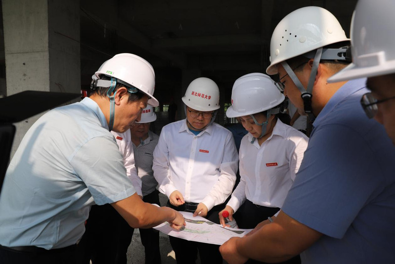 调研过程中,校领导听取了基建处负责人对南区扩建项目进展情况介绍,深入研究当前南区国际学术交流中心、南校门(开道口)、南区主干道等项目建设的困难和问题,现场交流指导。