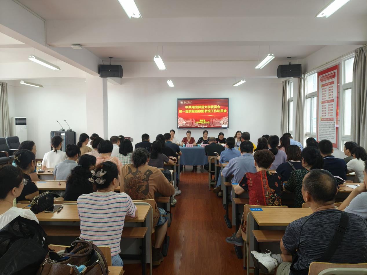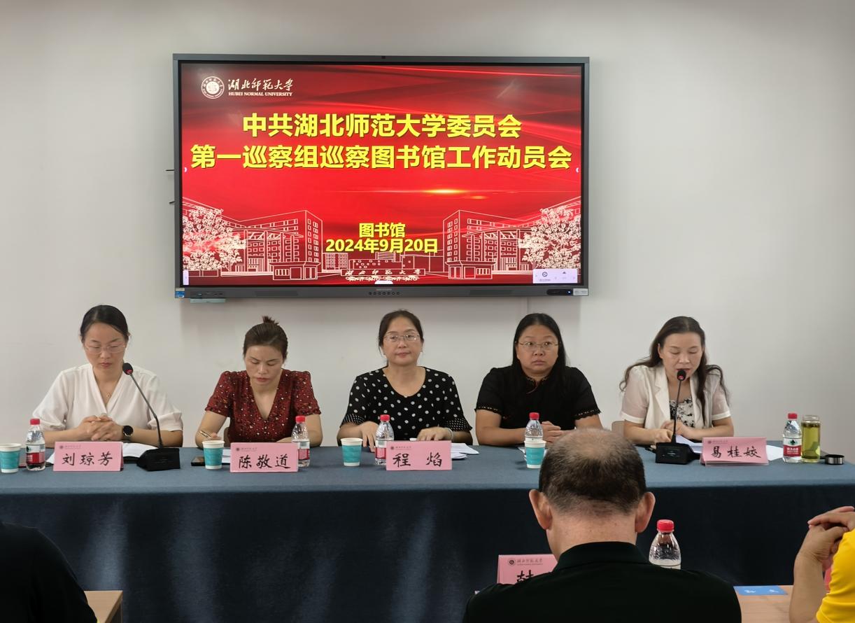 本网讯 根据校党委统一部署,2024年9月20日下午,中共湖北师范大学委员会第一巡察组巡察图书馆党总支工作动员会在图书馆二楼会议室召开。校党委第一巡察组组长程焰及全体巡察人员、图书馆班子成员及全馆职工参会,图书馆馆长易桂姣主持会议。
