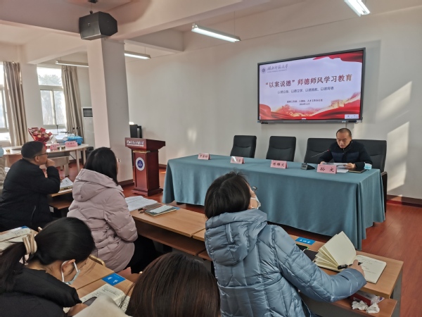 在“以案说德”师德师风学习教育环节,孙文讲授了《“以案说德”12月份微课》,领学了习近平总书记关于教师队伍建设的重要论述,剖析了师德师风正反面典型案例,并在清廉湖师故事会专题讲述了全国优秀共产党员、全国三八红旗手、改革先锋王瑛的先进事迹。