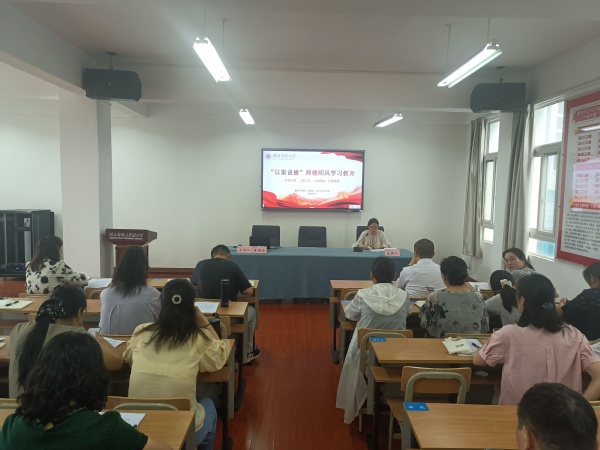 在“以案说德”师德师风学习教育环节,罗学玲副馆长为全体馆员讲授了《“以案说德”5月份微课》,领学了习近平总书记关于教师队伍建设的重要论述,讲述了师德师风正面案例和反面案例,并在清廉湖师故事会专题讲述了“共和国勋章”获得者张富清的感人事迹。她对全馆职工提出三点要求:一要守牢职业道德底线;二要持续净化师生关系;三要涵养优良家风。