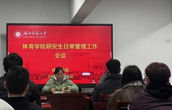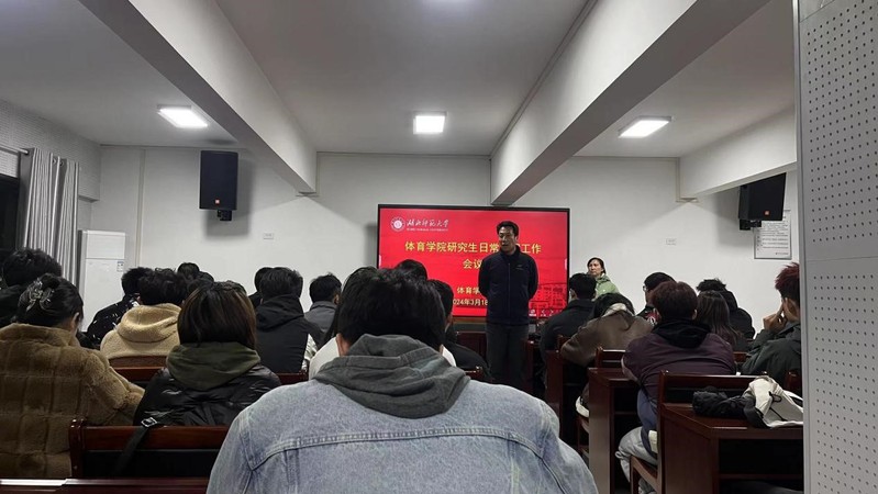 本网讯 2024年3月18日晚上,体育学院在体育馆三楼多媒体教室召开体育学院研究生日常管理工作会议。体育学院院长周曙、党委副书记杨丽、辅导员李亮、研究生班主任王伟及体育学院全体研究生参会。