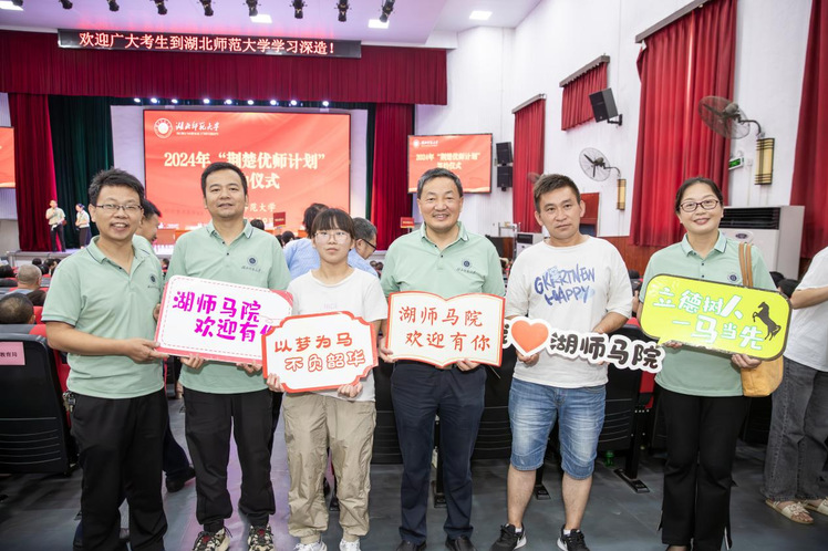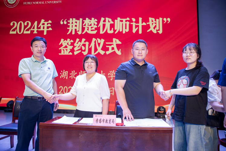 签约仪式现场,雷儒金对高考中取得优异成绩、即将被湖师录取的200名新生及家长表示祝贺,并对长期给予学校建设发展关心与支持的各地市州教育局表示感谢。他表示,希望进一步加强与各地市教育局的沟通与合作,大力支持“荆楚优师计划”项目的实施;同时,希望各培养单位高度重视“荆楚优师计划”师范生培养工作,切实保证人才培养质量。此外,他还勉励全体新生要深植家国情怀,强化师德养成,增强振兴乡村教育的责任感和使命感。