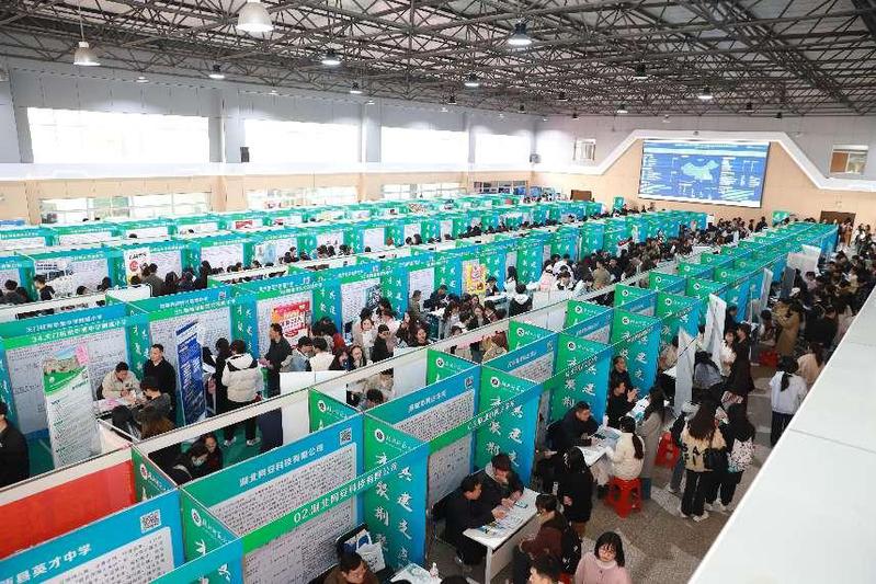 3月28日,由我校与黄石市人才中心联合主办的“才聚荆楚·共建支点”2025届毕业生春季综合类招聘会在大学生活动中心成功举办。本次招聘会吸引了来自湖北、江西、浙江、江苏、广东、海南、新疆等地的128 家用人单位现场揽才,提供就业岗位3674个,涵盖教育、智能制造、电子信息、生物医药、新能源等多个领域。