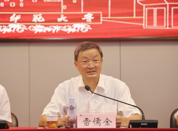 雷儒金从迎接审核评估工作、招生就业工作、校园基本建设工作、校园安全稳定工作及其他工作等方面简要回顾了学校的暑期工作,并从审核评估、教育教学、学科建设、科学研究、教师教育、国际交流与合作、人才队伍建设、管理服务、党的建设等9个方面系统回顾了我校上半年的重点、亮点工作,并对照2024年学校年度工作要点和规划年度分解指标,围绕迎接审核评估和教育教学、内涵发展和“双一流”建设、内部治理和条件保障、党建等4个维度系统全面部署了下半年的20项重点工作。他强调要深入学习宣传贯彻党的二十届三中全会精神;组织开展党风廉政宣教月活动,启动新一轮校内巡察工作;组织开展2024年下半年师生宗教信仰调查及相关学习教育等10项由宣传部、党政办、纪委等相关单位牵头的8月底和9月份的重点工作。他指出全校上下要在学校党委的坚强领导下,咬定目标不放松,全力决胜下半年,在“审核评估”中显担当,在“双一流”建设上展作为,圆满完成今年全年目标任务,奋力谱写学校高质量发展新篇章,为推进中国式现代化湖北实践贡献湖师智慧和力量,以优异成绩迎接新中国成立75周年。